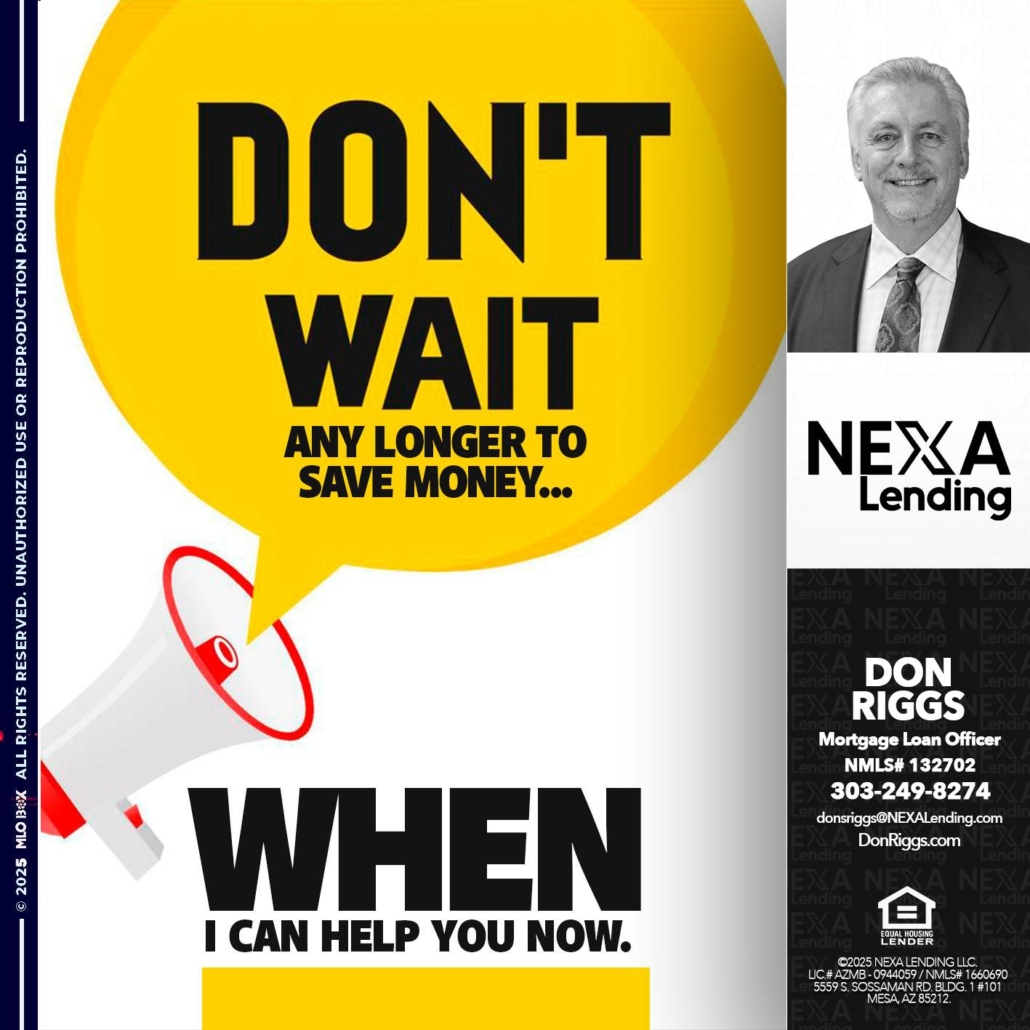 Hi, my name is Don S Riggs. I’m a Loan Officer with NEXA Mortgage LLC., offering personalized mortgage solutions, fast customized quotes, great rates and service with integrity.